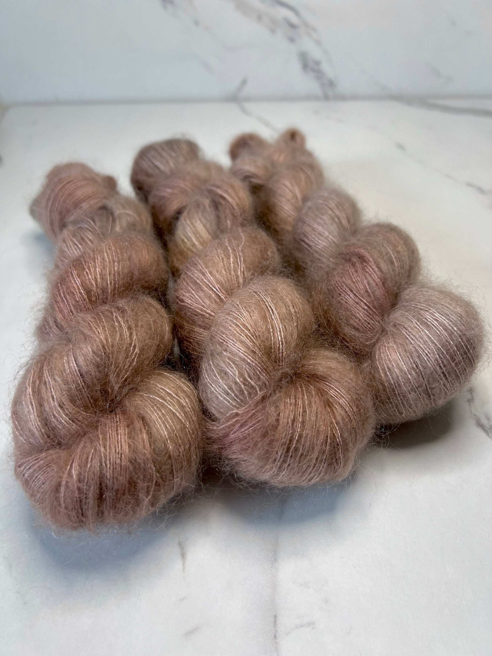 ISOLDA is an elegant and airy yarn, composed of 64% RMS kid mohair and 36% silk , two prestigious fibers renowned for their softness, lightness, and incomparable warmth . As precious as cashmere, it envelops your creations in a delicate and ethereal halo, perfect for sophisticated projects.