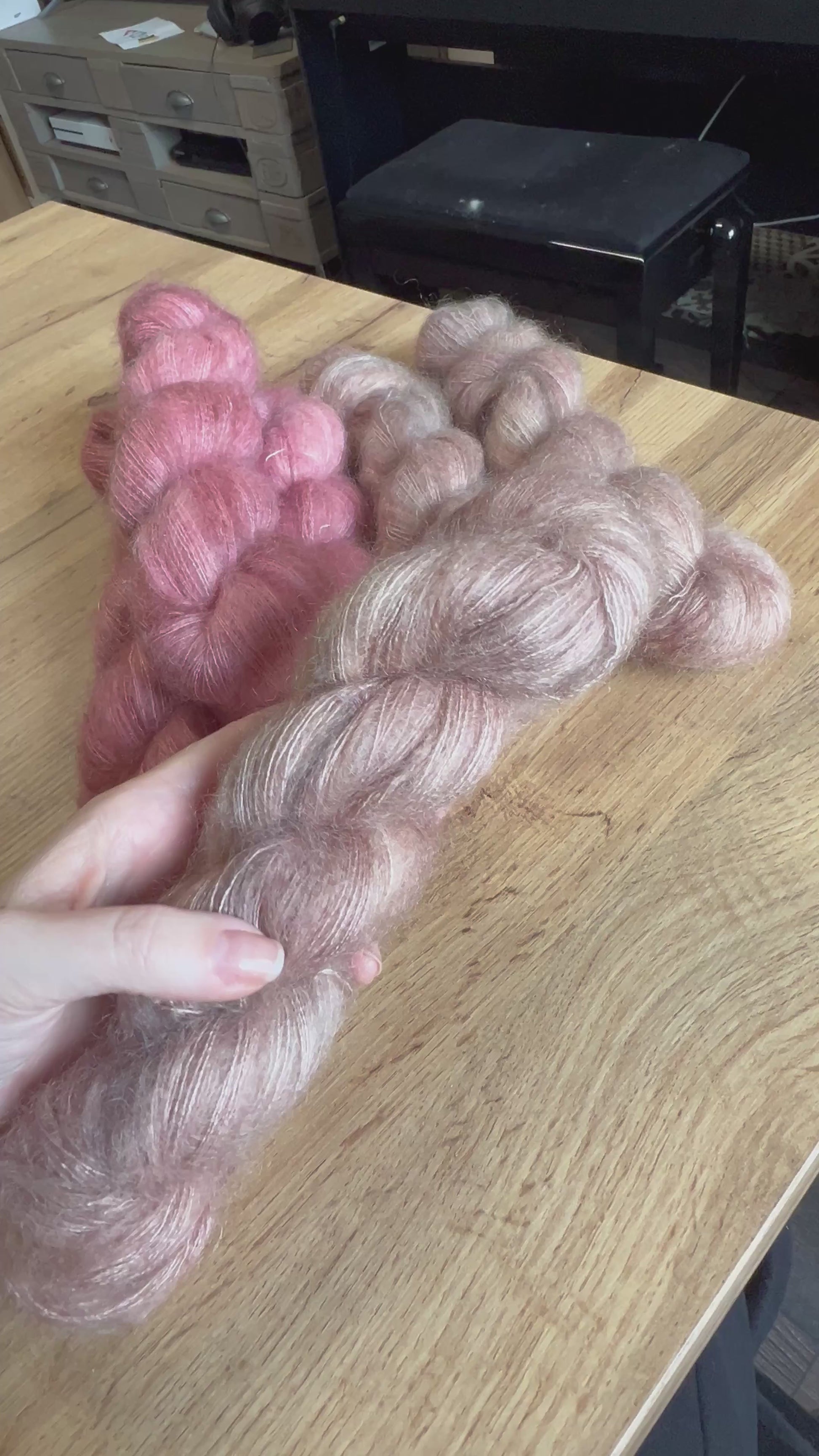 💫 Combined with silk, it gives one thread at a timevaporous, luminous and refined, ideal for sophisticated and delicate pieces. Knitted alone, it creates workslight and cloudy, perfect for shawls or airy layers. Combined with a yarnfingering or DK, he bringswarmth, depth and texture, enhancing your sweaters, cardigans and accessories.