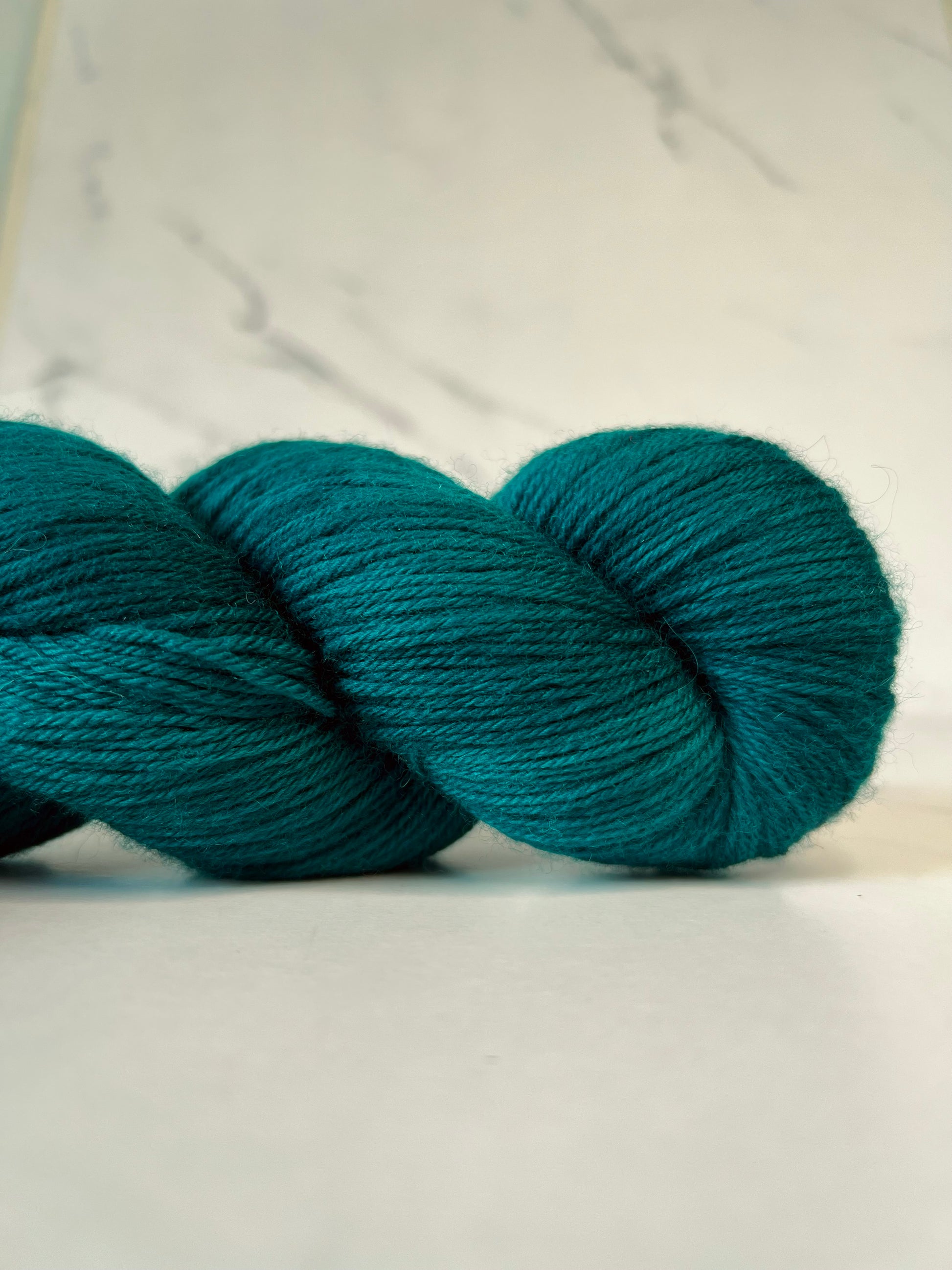 Chaque fil est teint artisanalement dans mon atelier par petits lots de 6, ce qui permet un contrôle rigoureux à chaque étape et offre des teintes intenses et semi-solides. Chaque bain est entièrement épuisé, et chaque écheveau est soigneusement contrôlé et remis en forme. Pour les projets nécessitant une grande longueur, il est recommandé d’alterner les écheveaux afin d’harmoniser les nuances. En cas de précommande, tous les écheveaux sont teints ensemble dans le même bain.