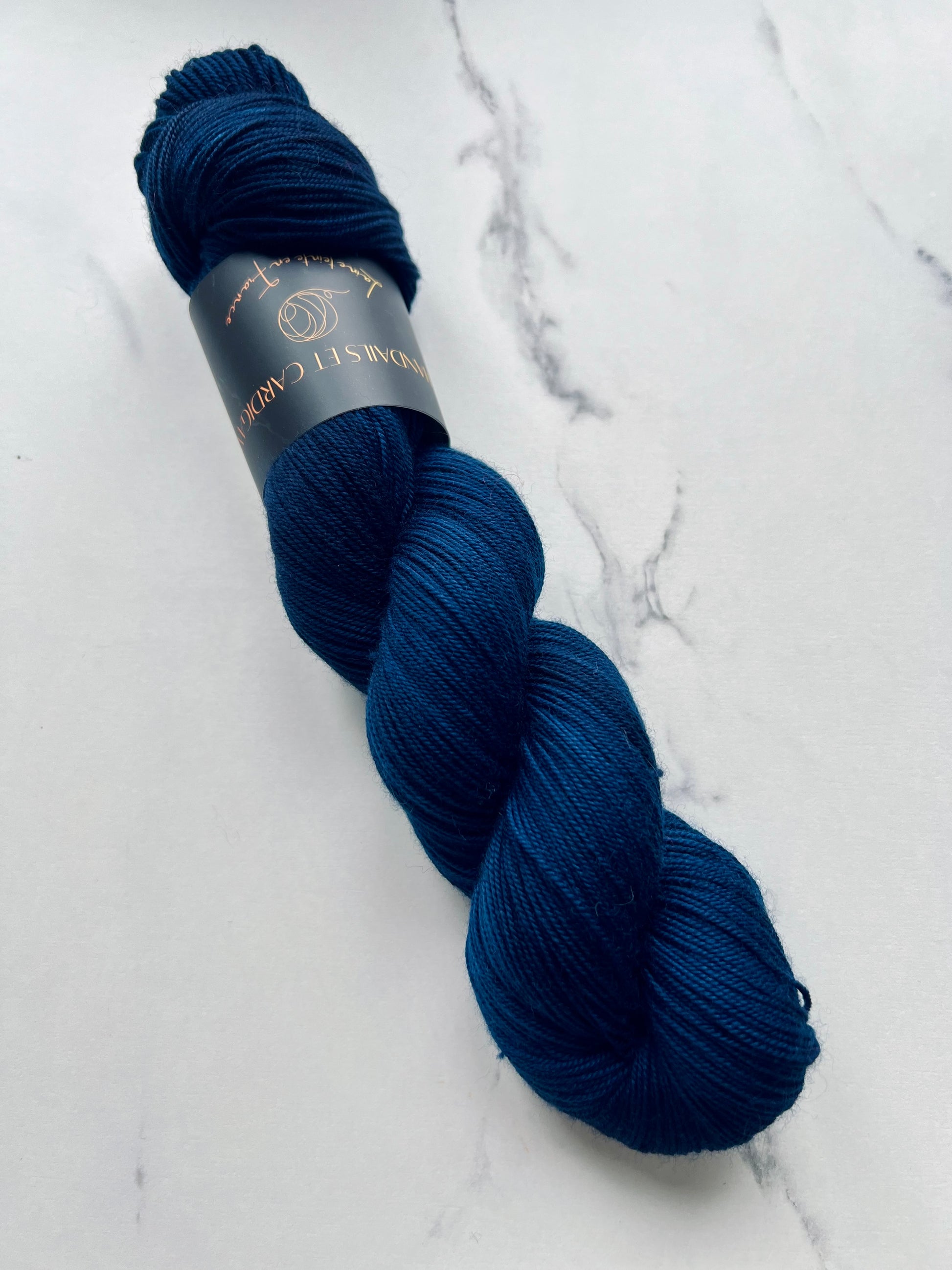 Chaque fil est teint artisanalement dans mon atelier par petits lots de 6, ce qui permet un contrôle rigoureux à chaque étape et offre des teintes intenses et semi-solides. Chaque bain est entièrement épuisé, et chaque écheveau est soigneusement contrôlé et remis en forme. Pour les projets nécessitant une grande longueur, il est recommandé d’alterner les écheveaux afin d’harmoniser les nuances. En cas de précommande, tous les écheveaux sont teints ensemble dans le même bain.