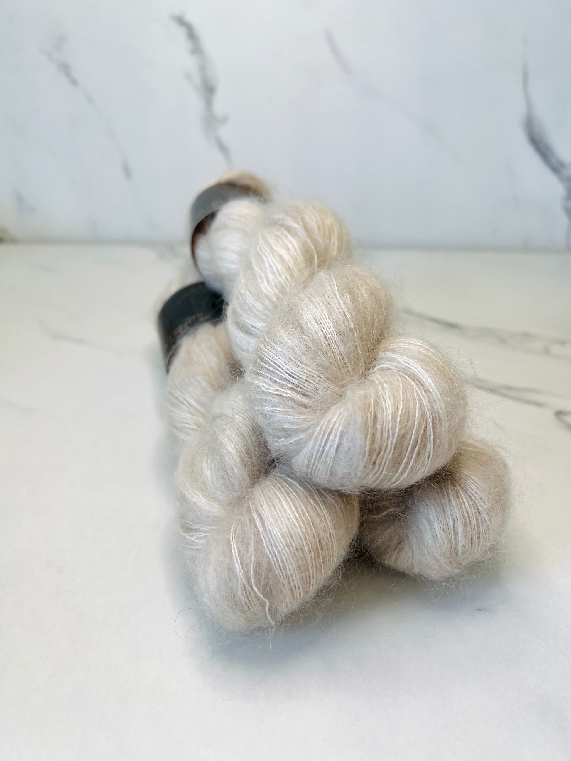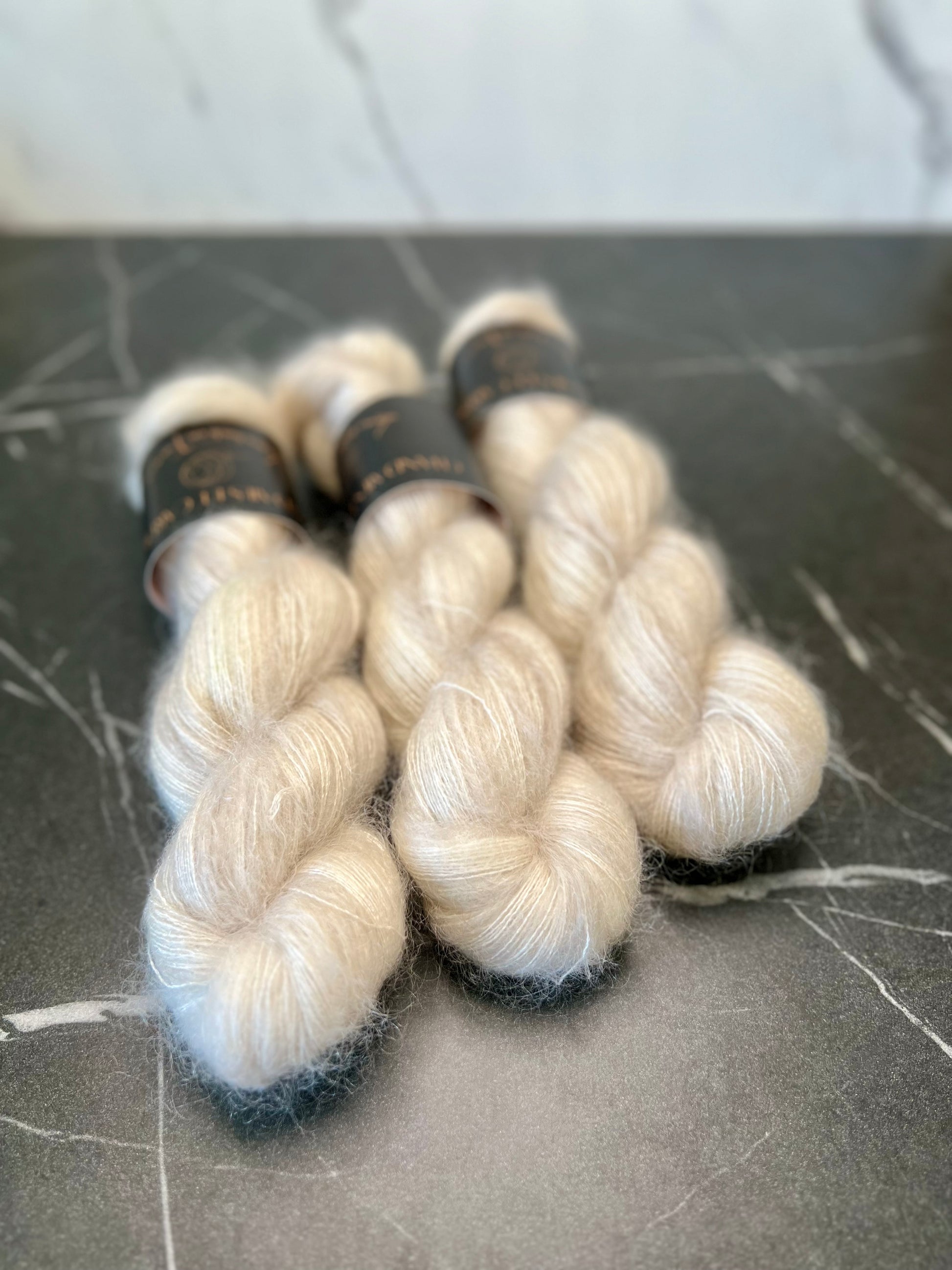 ✨ Le fil ISOLDA est un mélange prestigieux composé de 64 % kid mohair et 36 % soie, deux fibres nobles qui confèrent à vos créations une douceur incomparable, un halo délicat et une brillance subtile. Léger comme une plume et aussi précieux que le cachemire, il enveloppe vos tricots d’une élégance aérienne.