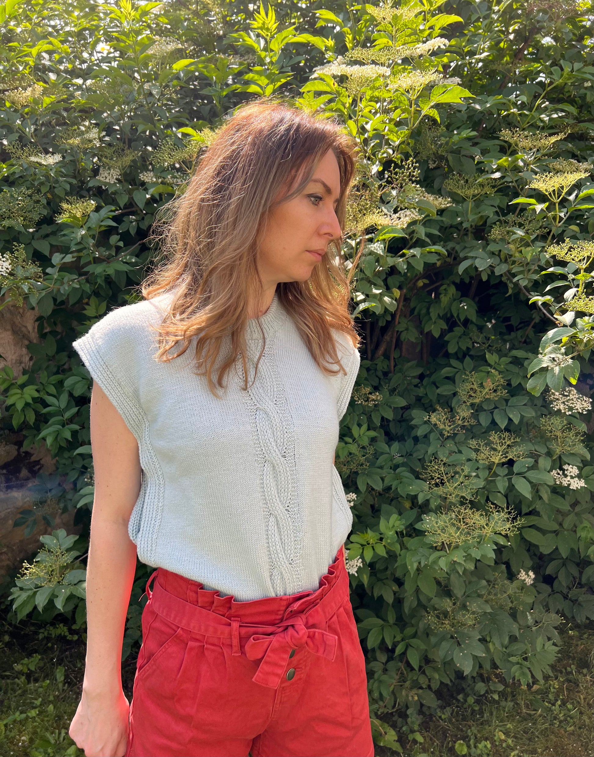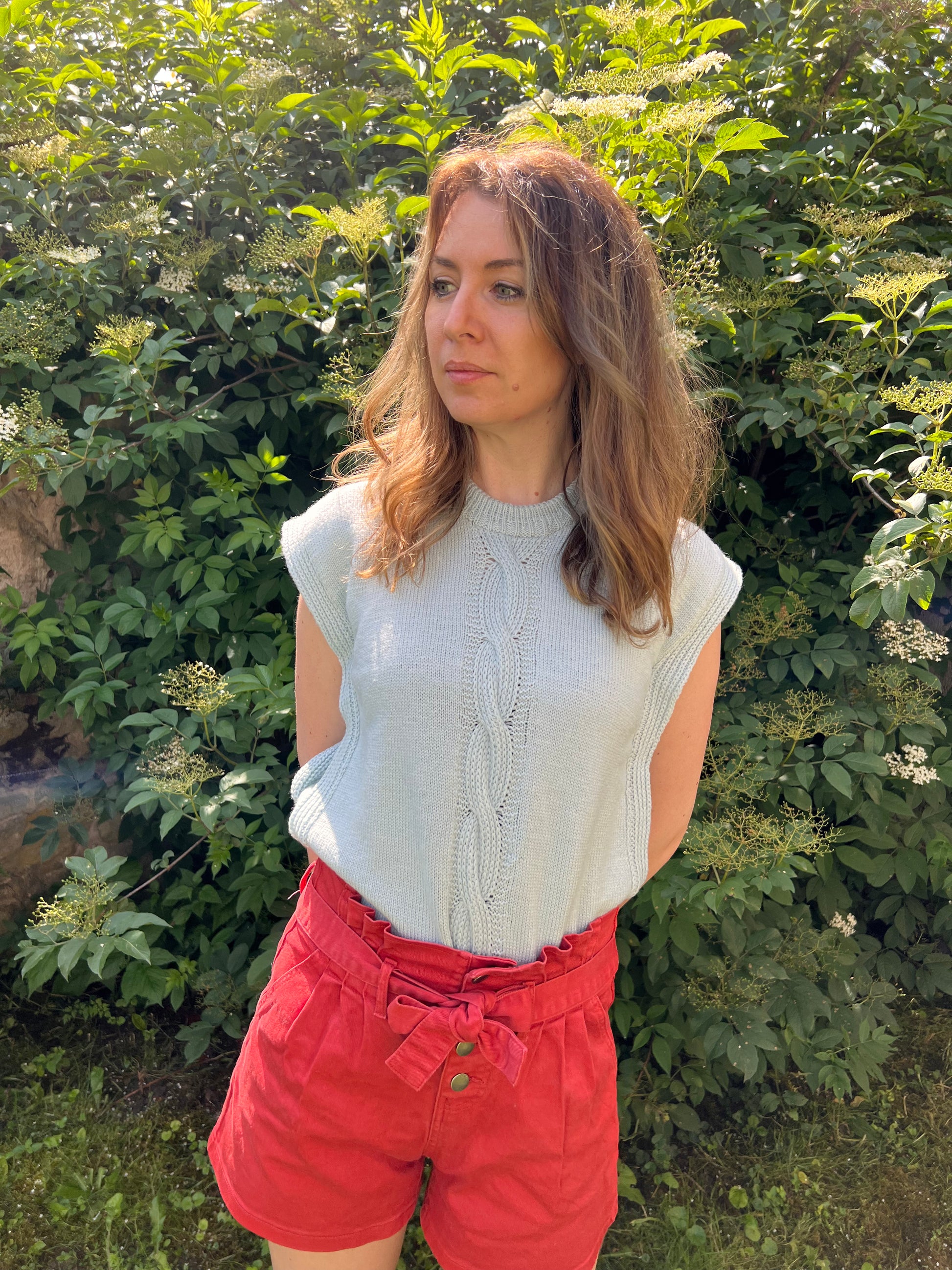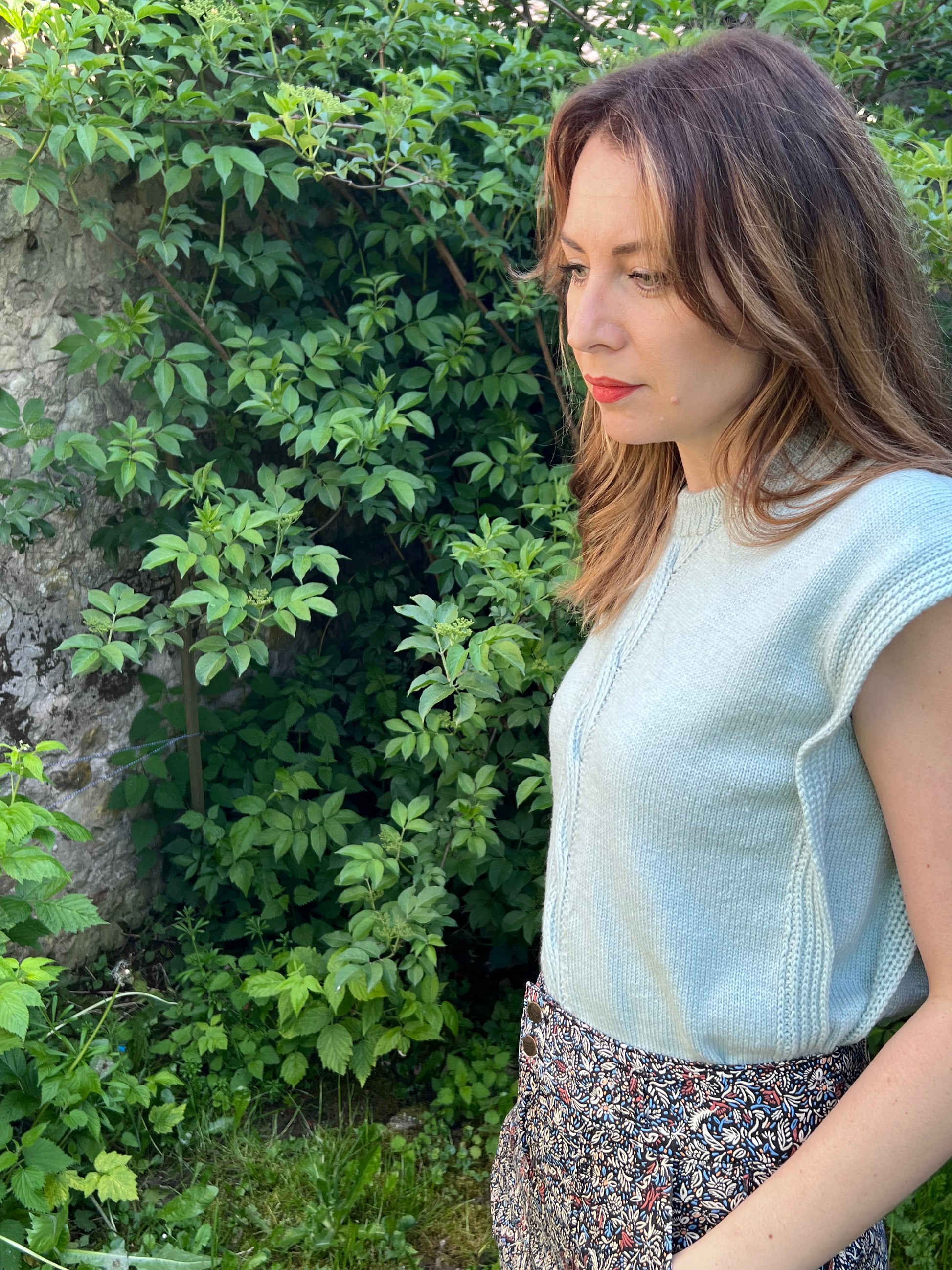 Le Slipover MIAMI se tricote de haut en bas avec un fil fin en mérinos bébé. On commence par le dos, puis on façonne les épaules séparément avant de tricoter le corps en rond, en formant les emmanchures par des augmentations. Le bas se termine par des côtes fantaisie. Le col se réalise en côtes, selon deux méthodes possibles. Enfin, deux bandes sont tricotées puis cousues discrètement, avec une finition soignée aux emmanchures au crochet ou en i-cord.