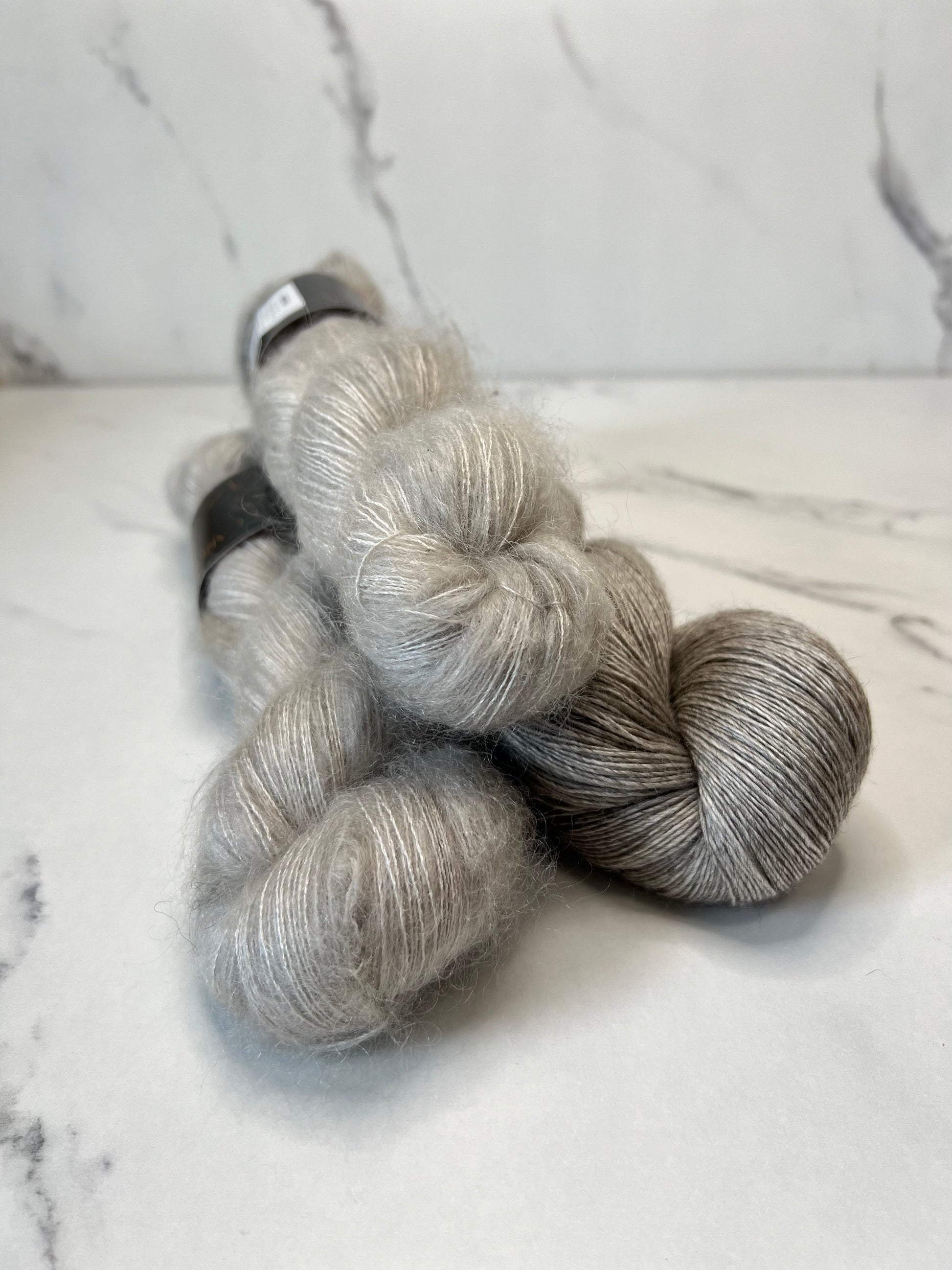 Associé à un fil de mohair & soie, le rendu final se situe entre la douceur lumineuse du mohair et l’intensité du yak, pour un effet harmonieux, équilibré et raffiné.